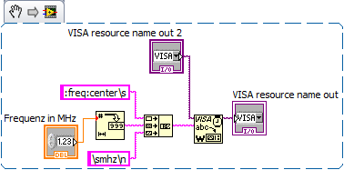 Ich versuche an einen Spektrumanalyzer zwei Parameter nacheinander zu übergeben - zunächst die Mittenfrequenz und dann den Span. Läuft beides momentan über RS232 (Befehl wird zusammengesetzt und dann einfach als ASCII übergeben und mit CR abgeschlossen). Lasse ich mein VI "normal" laufen, dann übernimmt der Analyzer zwar die Mittenfrequenz, aber nicht den Span. Lasse ich die Sache allerdings im Highlight-Modus laufen, dann übernimmt er beide Parameter.