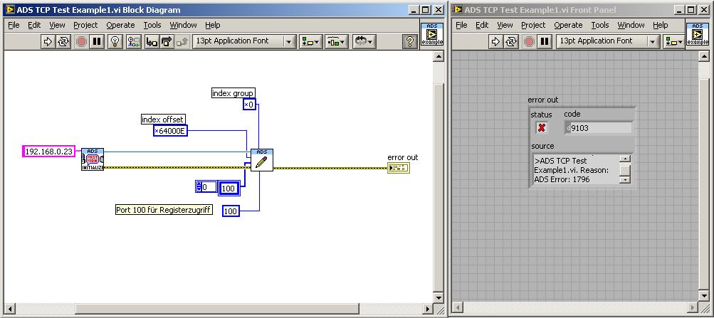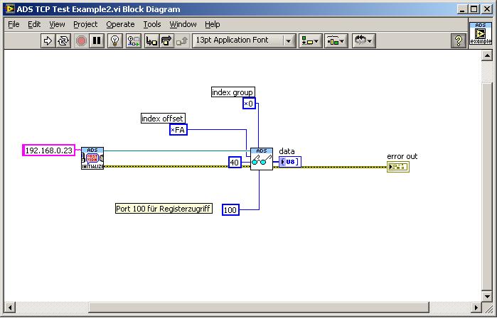 Den Port stellst Du bei den ADS VIs beim Parameter Port in den SubVIs ADS Read Packet.vi und ADS Write Packet.vi ein. Dieser ist zurzeit in ADS Read Bytes.vi und ADS Write Bytes.vi noch nicht nach aussen geführt.