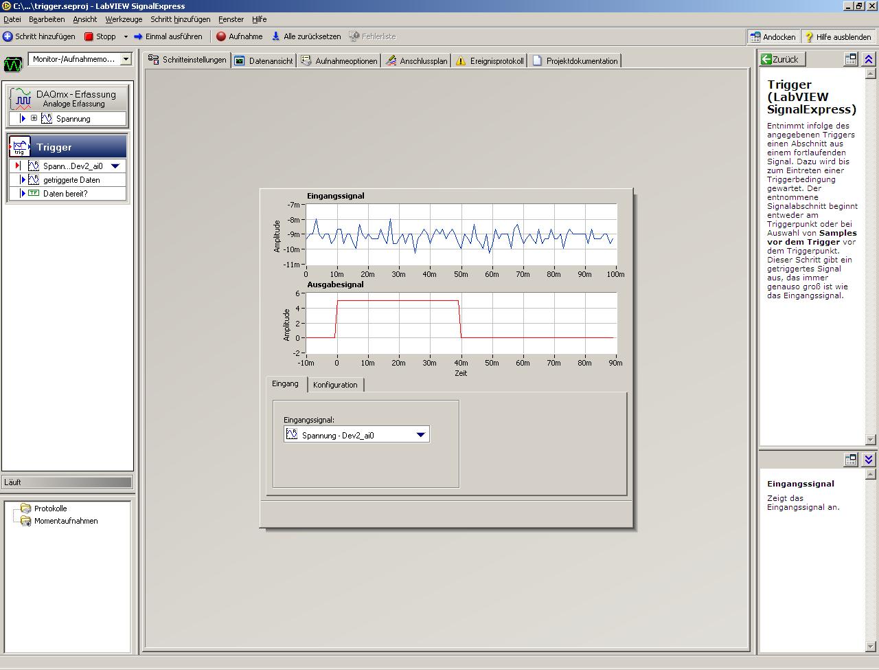 Bin noch ein ziemlicher Anfänger was LabVIEW angeht. Ich möchte gerne einen Trigger Signal anzeigen und weiterverarbeiten können.