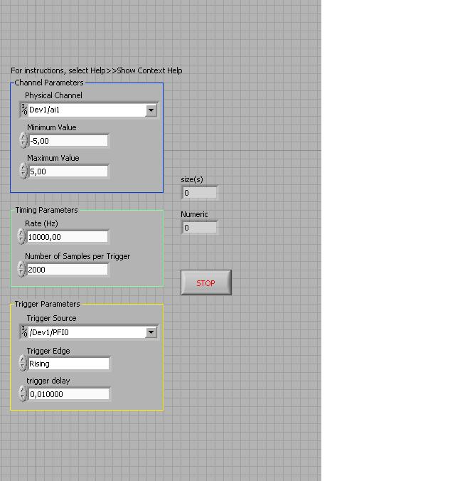 Könnte mir jemand die Hinweise geben, wie ich Triggerug konfigurieren soll. Ich brauche zur Analyse 10 Perioden des Signals (Frequenz beträgt 50 Hz). Ich habe die PCI - 6143 Karte und LabVIEW 7.1.