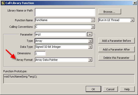 Anbei mal ein Beispiel VI. Ich habe dem DLL Aufruf (Funktion erwartet u.A. einen Pointer) ein Numerisches Element aus einem Cluster zugewiesen. Die Funktion signalisiert über diesen Pointer, oder besser gesagt den Inhalt der Speicherstelle, einen Zustand.