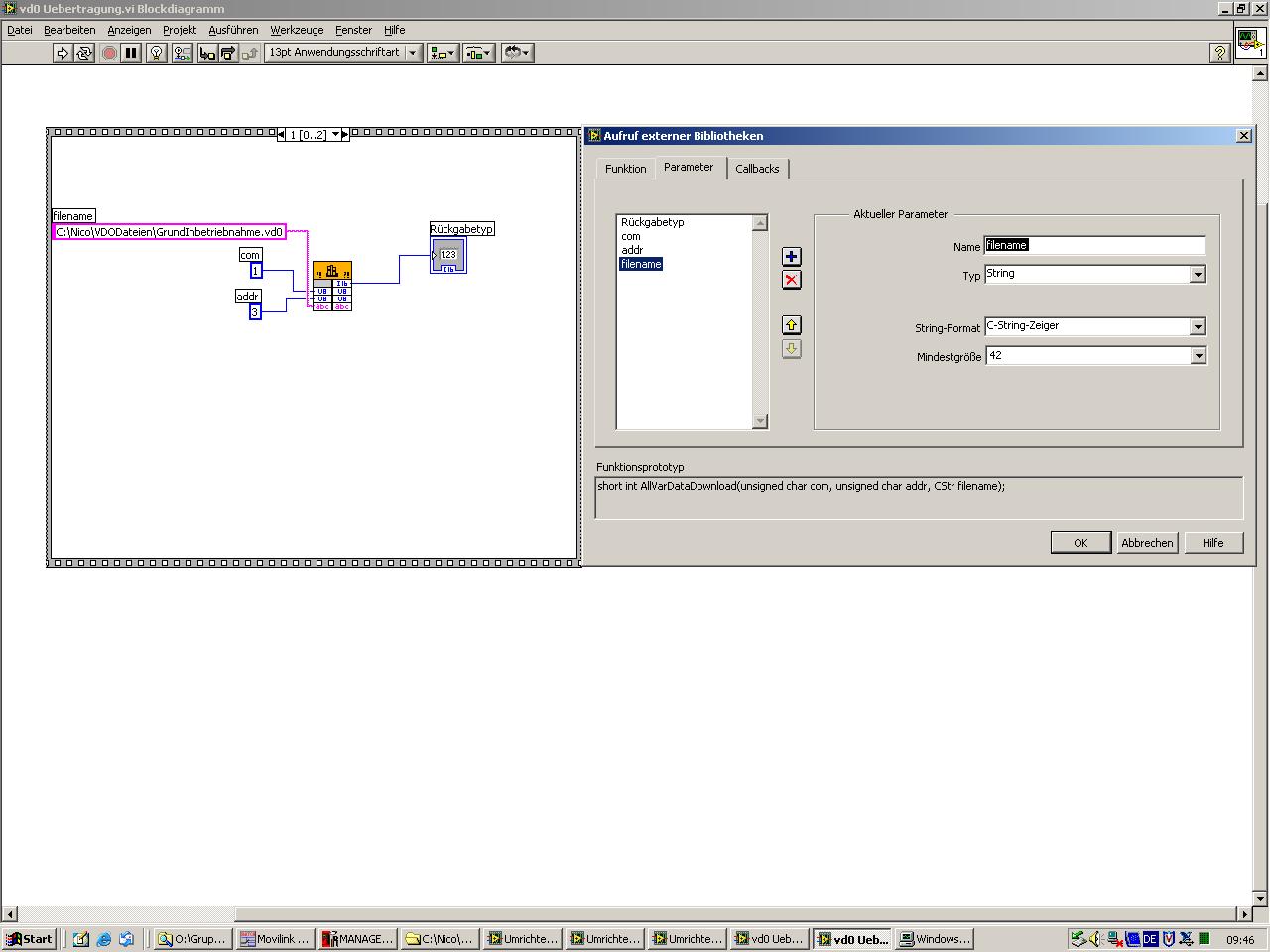 *filename = ist der Dateipfad (LabVIEW übergebe ich hier einen C-Pointer mit der Größe des Strings in meinem Beispiel 42Byte)