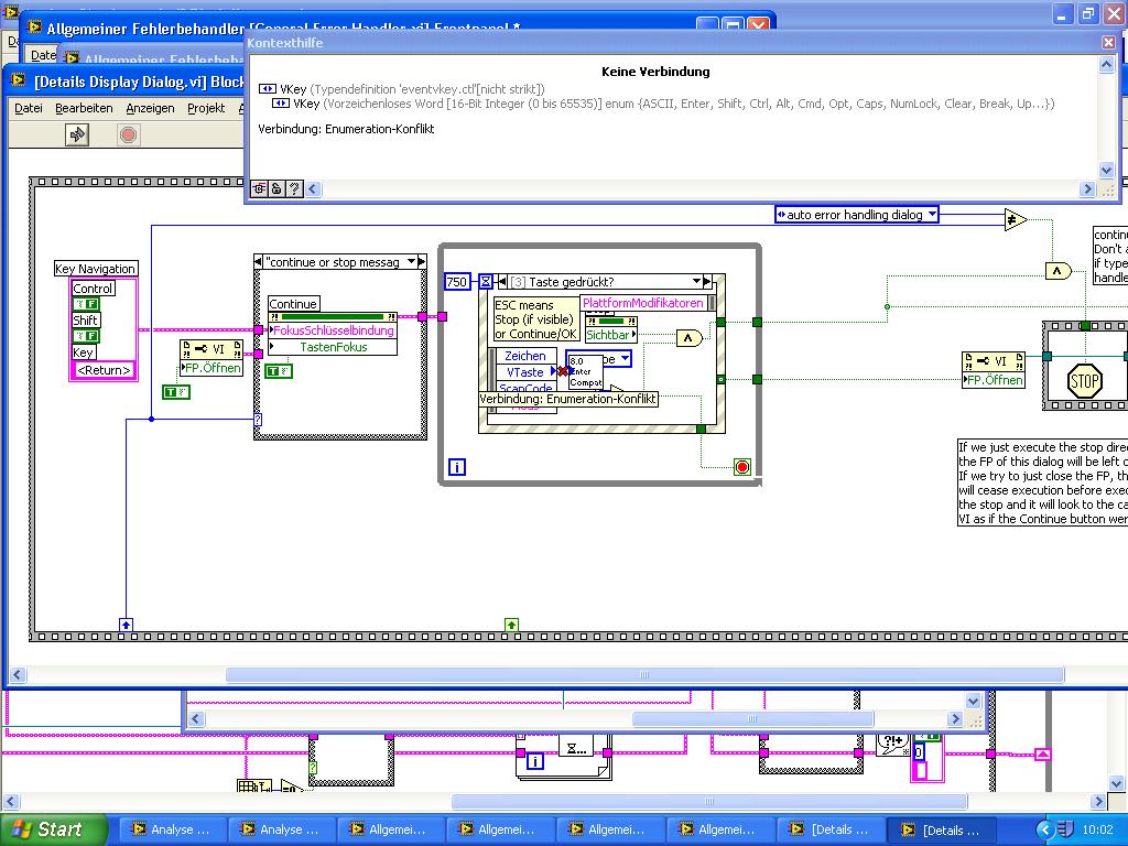 Ich hab schonmal versucht den General Error Handler aus dem Blockdiagramm zu löschen und ihn dann nochmal eizufügen, aber da kommt dann     .
