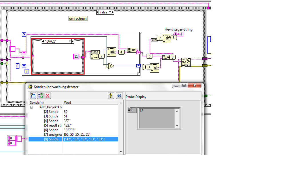 Schließe mal eine "2" an den Eingang "width" vom "Number to Hex String" an, dann solltest du auch 0B, 00 usw. erhalten.
