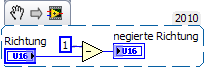 Was hat das Invertieren eines Wertes in LabVIEW mit dem Verhalten eines Motors zu tun?