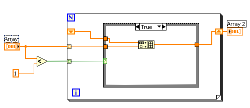 ich habe ein eindimensionales Array und möchte daraus bestimmte Werte (z.B. alle Werte <0) entfernen, so dass nur noch mein Array mit für mich gültigen Werten übrigbleibt. Im Moment habe ich dafür ein for-Schleife, die jedes Element des Arrays mit meiner Bedingung vergleicht und ist die Bedingung erfüllt, wird das gerade untersuchte Element in den TRUE-Rahmen meiner CASE-Struktur durchgereicht (innerhalb meines For-Rahmens). Aber was mach ich dann? Wie füge ich die 'gültigen' einzelwerte wieder zu einem neuen Array (innerhalb meines TRUE-Rahmens in der Case-Struktur) zusammen?