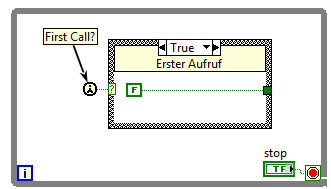 Im False Case änderst du dann die Variable. Der False Case wird dann permanent ausgeführt, solange das VI läuft. Nur beim ersten Aufruf des VI´s wird der True Case ausgeführt.