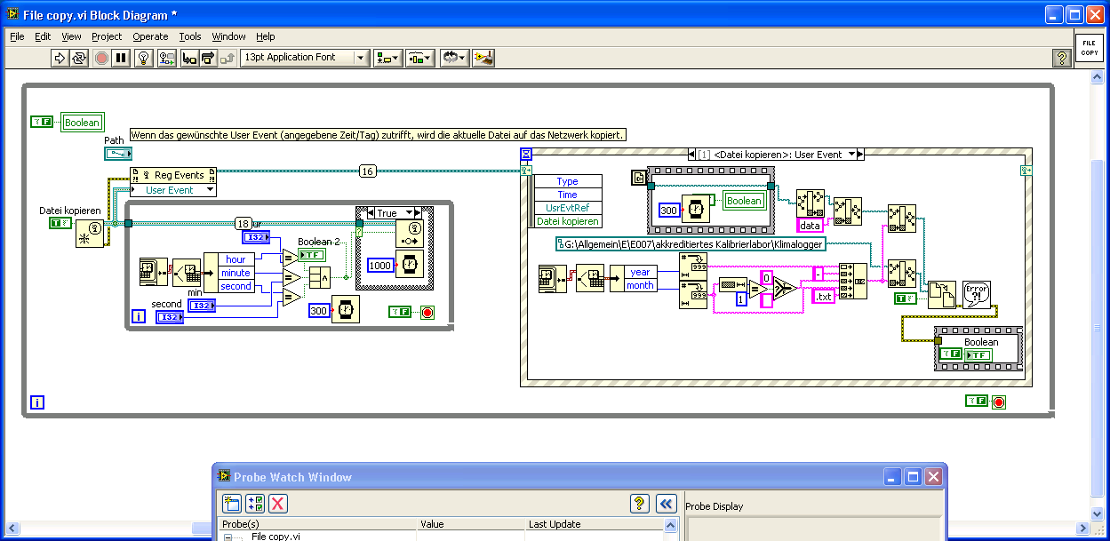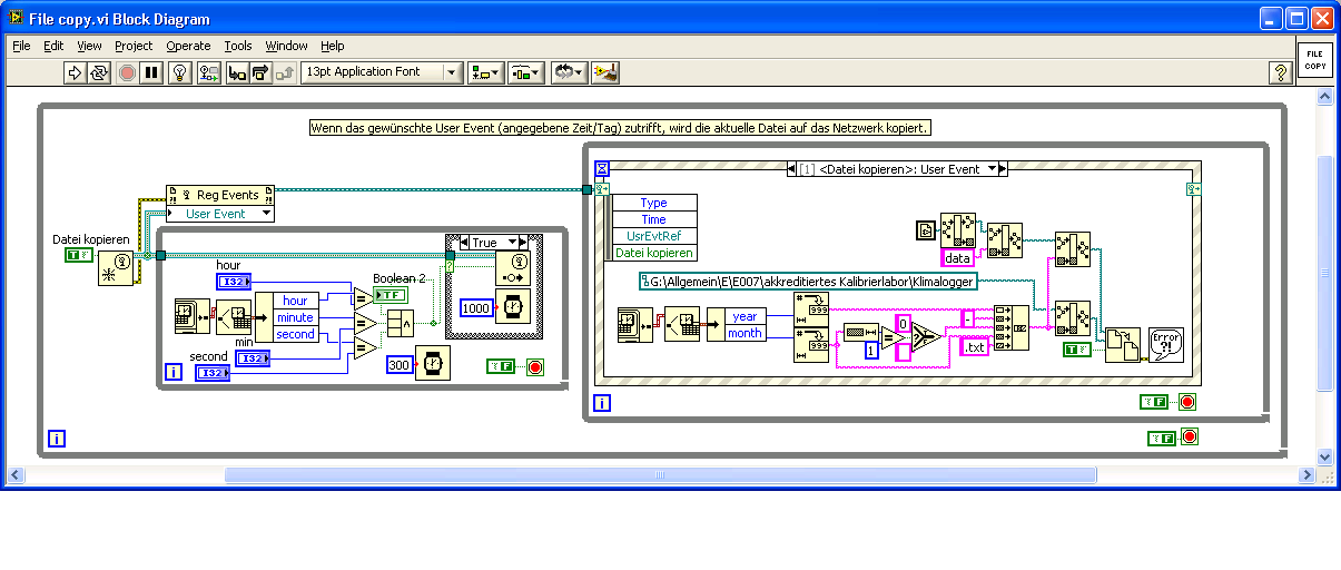 Wenn die Event-Struktur also einmal abgearbeitet wurde, so muss sie solange warten, bis auch die parallele While-Schleife abgearbeitet worden ist. Erst dann kann die Event-Struktur erneut starten. Da die papallele While-Schleife aber nie endet, wird die Event-Struktur kein zweites Mal gestartet.
