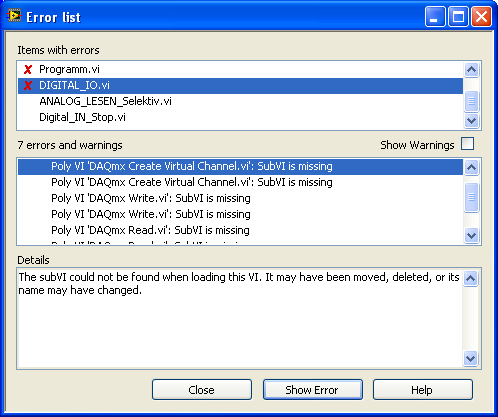 Durch die Installastion des DAQmx sind jetzt aber Fehler aufgetreten, die alten Verknüpfungen funktionieren nicht mehr.
