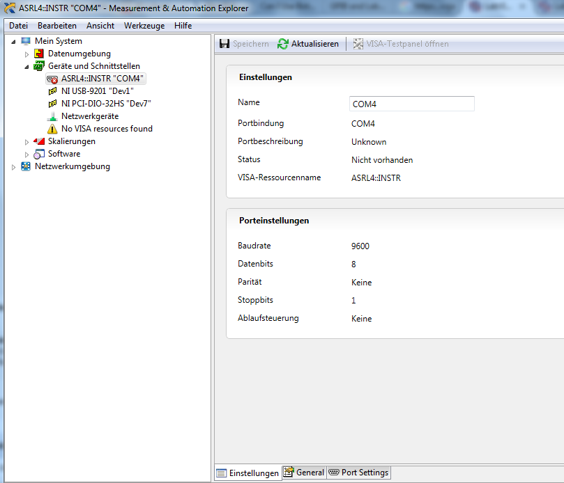 Warum steht in MAX eine ganz andere VISA Resource? (ASRL4::INSTR)