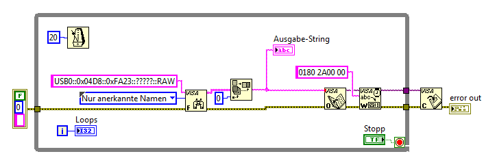 Mit dem Fertigen Programm möchte ich nur kurz die I/O-Funktionen der Geräte testen, dafür ständig neue VISA-Treiber anzulegen wäre viel zu zeitrauben.