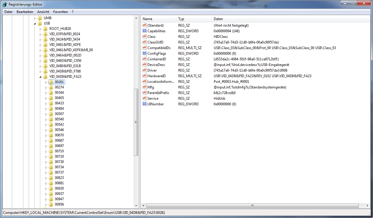 auch ein Eintrag der Form "VID_04D8&PID_FA23" finden. Wenn Du den öffnest findest Du