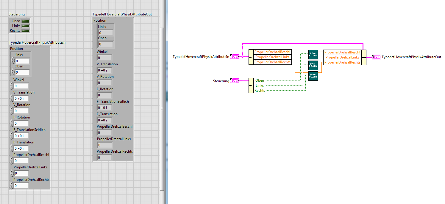 (23.08.2018 06:51 )GerdW schrieb:  - Schau dir doch mal mein "Snake"-Bild oben an: da verwende ich einen Cluster, der im Schieberegister gespeichert wird. Der enthält alle Spiel-relevanten Daten! Und man sieht ein UnbundleByName, aus dem der aktuelle Spielstand gelesen wird. Die subVIs verwenden diesen Cluster als FP-Elemente und bearbeiten ihn intern - deren FP sieht der User aber nie.