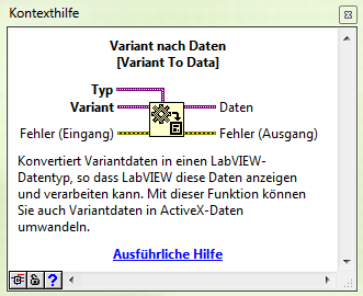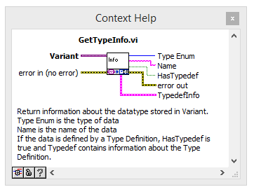 Über die Klassen-ID des jeweiligen Elements kann dessen Typ ermittelt werden und somit kann der "Typ" Anschluss des Variant to Data VIs dementsprechend verbunden werden!