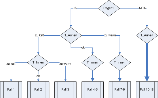 würde also heißen, dass ich die states "regnets?", "wie warm ists druaßen", "wie warm ists drinnen" und anschließend die 18 fälle anlege?