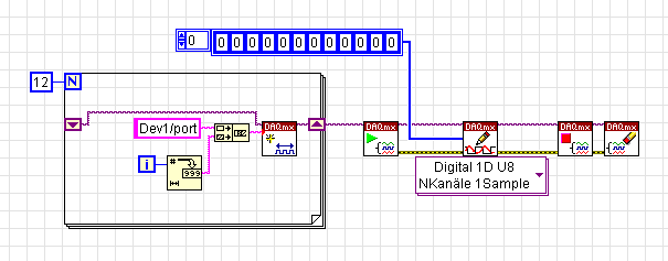 Mein Ziel ist es, diese Ports in einen einheitlichen Zustand (0) zu bringen. Meinet wegen auch alle Ports auf der NI-6509.