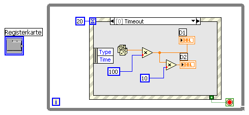 Anmerkungen: In den Time-Out-Case hab ich mal deine "simulierte Datenerfassung" getan, bestimmt nicht die endgültige Lösung. Und statt lokalen Variablen empfehle ich aus eigener schlechter Erfahrung (zumindest ab LV8.0) lieber die Property-Nodes beim setzen der Registerkarten-Seite.