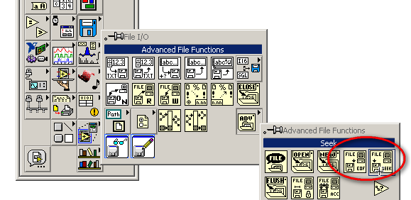 Unter der "File Palette" sollte es ein Untermenü "Advanced File Operations" o.ä. geben. Und dort eine Funktion, mit der man den "File-Zeiger" auf EOF setzen kann.