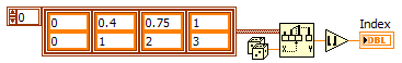 Ich würde dafür die Funktion "1D Array interpolieren" wählen und eine Arraykonstante erstellen, die den gleichverteilten [0, 1)-Bereich in den ungleichverteilten Index [0, 15] umsetzt: