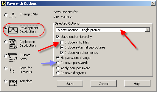 klicke in deinem Haupt-VI auf "Save with Options" und wähle die Option "Development Distribution" an.