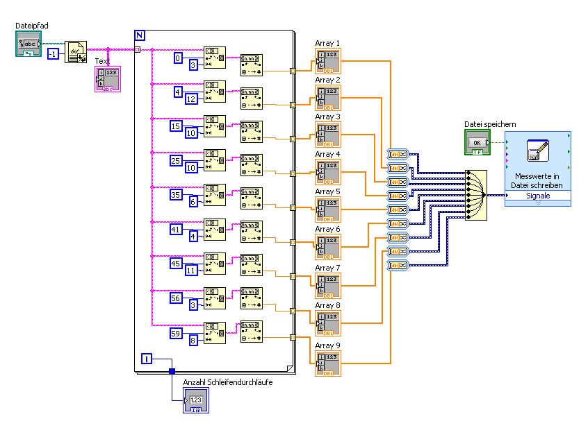 Die Verwendung von solch langweiligen gleichförmigen Strickmustern ist immer suboptimal. Labview ist speziell daraufhin konzipiert, das sich so etwas immer vermeiden läßt.