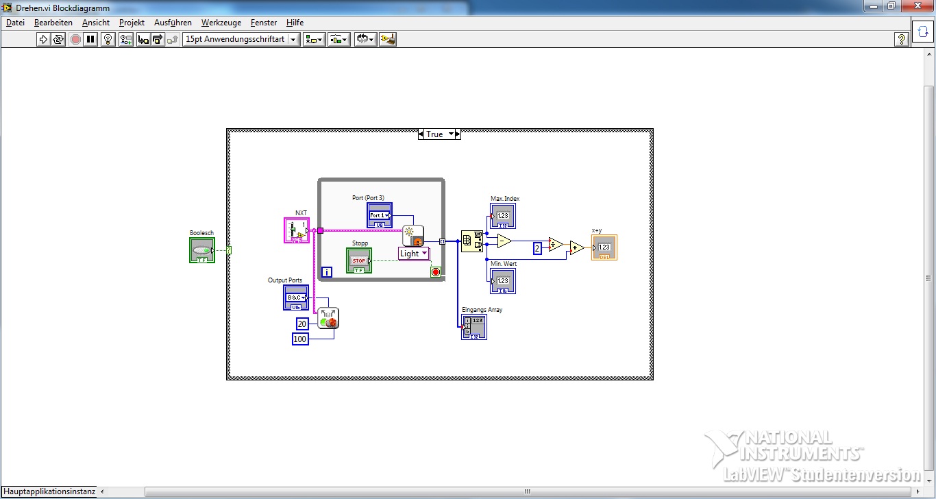 Linienfolger mit NXT Lego Mindstorm. Soweit läuft das Hauptprogramm um der Linie zu folgen. Dies realisiere ich mit einem Helligkeitssensor der auf Dunkle Linie reagiert. Hier kommt eine Problematik auf, dass natürlich je nach Lichtverhältnisse ein fest vorgegebener Wert für Helligkeit bzw. Dunkelheit zu Problemen beim Linienfolgen führen kann.