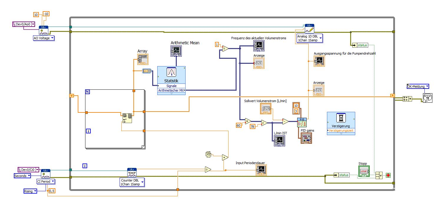 ich bin ziemlich unerfahren was Labview angeht. Ich arbeite gerade an meiner Bachelorarbeit und versuche eine Regelung für eine Solarthermieanlage zu erstellen. Ein Teil dieser Regelung besteht darin, den IST-Volumenstrom zu erfassen und diesen ggf. an den SOLL-Volumenstrom anzupassen. Dafür werden die Ausgabesignale eines Durchflussmessers benötigt. Dieser Sensor gibt ein Rechtecksignal aus.
