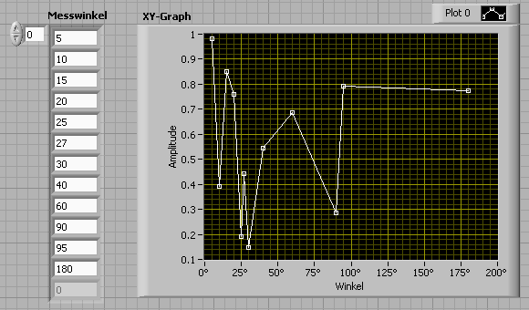 Leider bekomme ich es nicht hin, das LabVIEW das Messergebnis speichert, einzeichnet und ich die nächste Messung durchführen kann, deren Ergebnis wiederum eingezeichnet wird, so dass ich am Ende eine Reihe von Punkten in meinem Diagramm sehen kann.