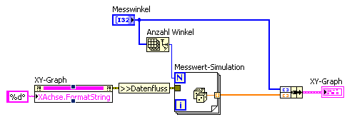 Was ist das links neben der Bemerkung ">>Datenfluss" und in was laufen die Kabel für die bekannten Winkel und die simulierten Messdaten (zweites Icon von rechts).