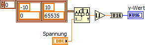 Wenn du DAQmx benutzt, kannst du dort direkt Skalierungen verwenden. Dann wird automatisch zwischen deinem Wertebereich und der zugehörigen Spannung umgerechnet...