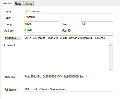 die ADS Info waren nicht für meinen Variable sondern von Ethercat. für den variable lautet die ADS Info: sieh das bild