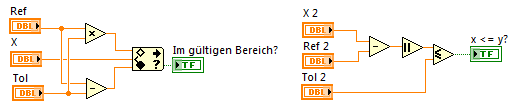 Die Funktion heißt "Wertebereich prüfen und erzwingen". Du kannst sie in der Funktionen-Palette unter "Programmierung->Vergleich" finden. Wenn du die Funktion im Blockdiagramm eingefügt hast, kannst du über das Kontextmenü einstellen, ob Ober- und Untergrenze zu dem Bereich dazu gehören sollen (je nach Einstellung, ändert sich Symbol im Blockdiagramm).