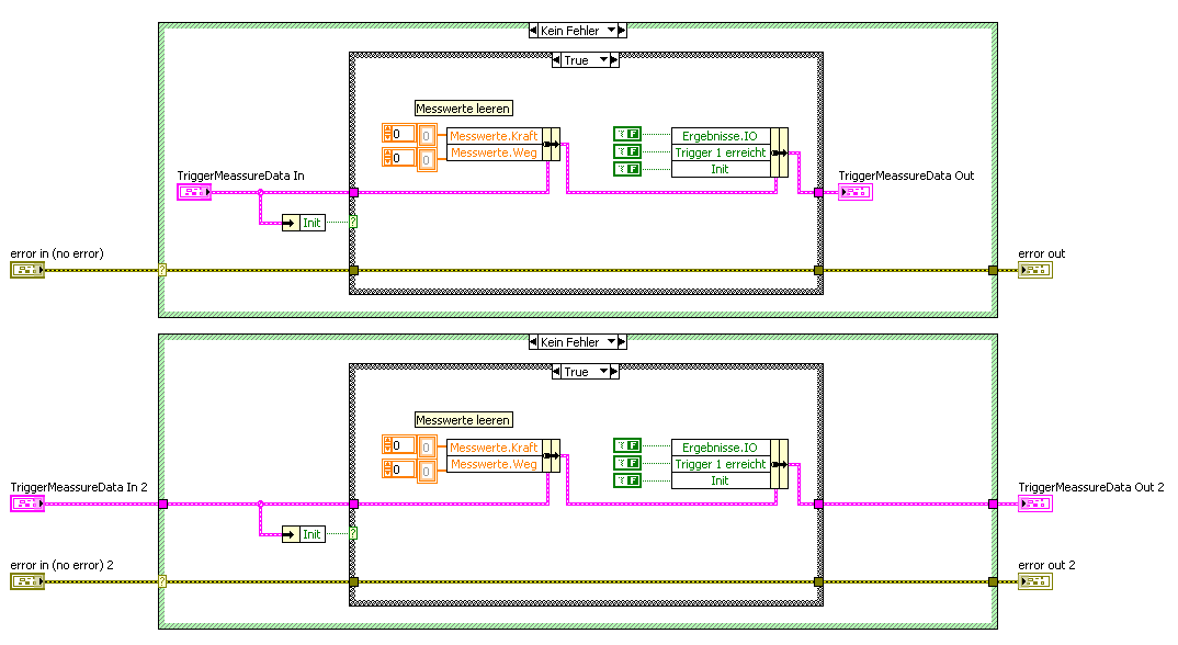 In der LV Hilfe gibt es jede Menge zu diesem Thema. Was mir direkt ins Auge gefallen ist, ist der Indicator Kraft-Weg-Signal. Ziehe den mal aus deinem Case heraus (ist sonst noch irgendeine Struktur die auf dem Bild nicht zu sehen ist?). Dadurch vermeidest du eine Kopie des Wertes.