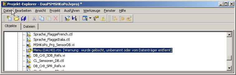 Ich gehe davon aus, irgendein Element am FP des SubVIs MSHKoPo_Prg_SensorDB.VI hat das spezifische Laufzeitmenü Menu(DA140).rtm. Nur: Ich finde dieses Element nicht.