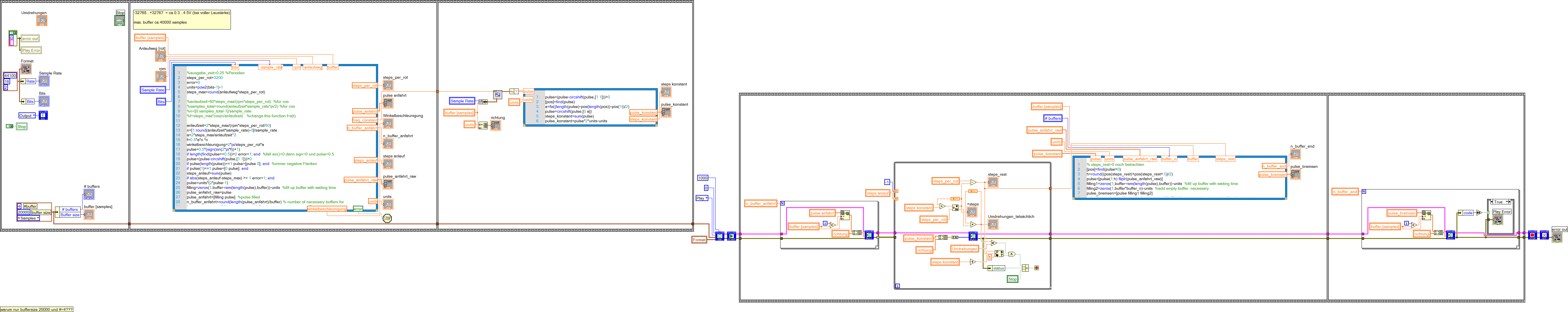 2. Ein Tip zur besseren Übersichtlichkeit: Mach doch mal aus deinen vielen Rechenschritten in den einzelnen Sequenzrahmen ein paar SubVIs. Auch dann brauchst du die Sequenzstruktur nicht und kannst durch entsprechende Datenflussverdrahtung die von dir festgestellten (und auch so programmierten) Race-Condition abstellen.