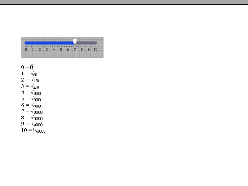 ich möchte die Skala eines Control Pointer Sliders individuell gestalten. Ist dies möglich? Meine Skala sollte so aussehen wie im angehängten Bild. Die Werte 0-10 sollen aber bei bewegen des Sliders weitergegeben werden.