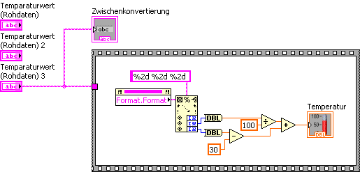 Wenn Du mutig bist, kopierst Du zusätzlich das ausgefüllte Stringobjekt: Temperaturwert (Rohdaten) mehrfach für unterschiedliche Temperaturen einfach in ein zusätzliches Frontpanel und speicherst auch diese, vor dem VI speichern, als Standardwerte ab...dann haben wir auch ein paar Kontrollpunkte.
