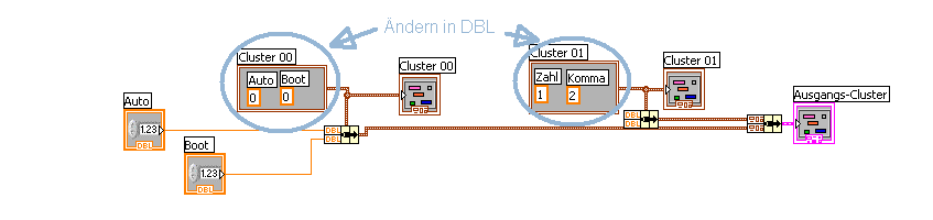 Das Problem liegt für mich am VI "Variant nach Daten". Es gibt nur Integer aus auch, wenn sie am Ausgang auf DBL umgestellt werden.
