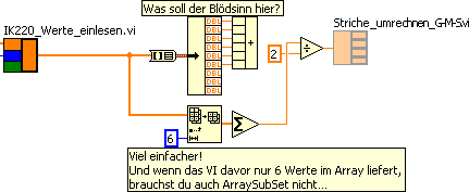 Zunächst mal muss ich sagen, dass ich ein totaler LabView-Neuling bin und mich gerade einmal mit ein paar Grundfunktionen vertraut gemacht habe.