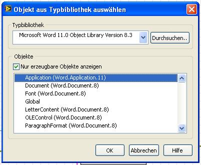 Ich vermute mal du hast mit rechtsklicken und dann ActiveX Klasse auswählen einfach nach Word gesucht und das erst Beste genommen.
