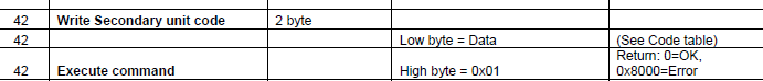 I am trying to write reg. 42 (write holding reg. / func 06/16) in order to change the temp. unit from C to F.