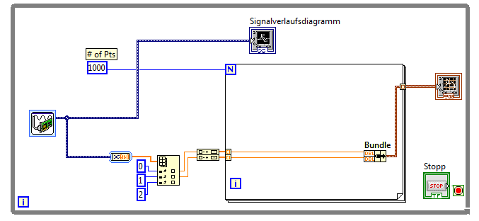 (DAQ-Assi Werte Lesen -> Signalverlaufsdiagramm -> Express VI Werte Schreiben)