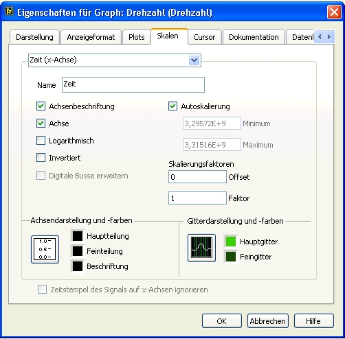 Zitat:Bei FALSE (Voreinstellung) übernimmt die x-Achse den t0-Wert aus den dynamischen oder Signalverlaufsdaten. Bei TRUE wird der Anfang der x-Achse auf 0 anstatt auf t0 gesetzt. Diese Eigenschaft gilt nur für Graphen mit dynamischen oder Signalverlaufsdaten.
