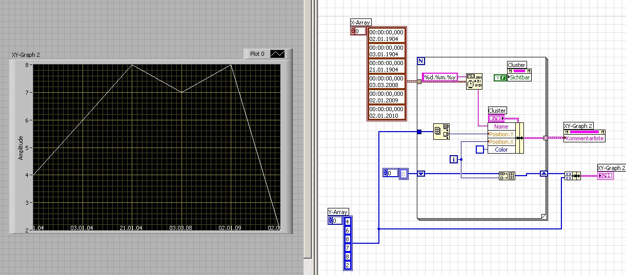 Ich wundere mich hier sowieso: Mit einem (Signalverlaufs)-Graphen kannst Du Deine Daten überhaup nicht dargestellt haben. Die einzelnen Plots eines Graphen (Bei Dir gibt es nur 1 Plot) müssen konstantes dt haben. Entweder Du hast ein Signalverlaufsdiagramm oder einen XY-Prahen verwendet.