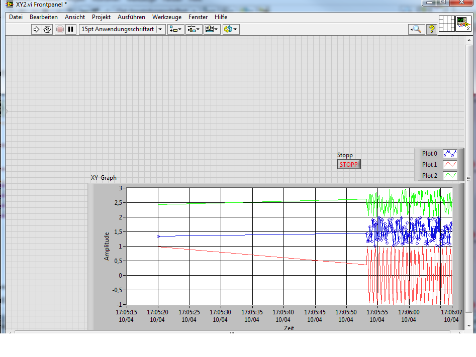 Da wo die Graphen normal anfangen wurde das VI gestartet. Der vordere einzelne Punkt ist irgendwie noch ein Überbleibsel aus dem vorherigen Lauf des VIs.