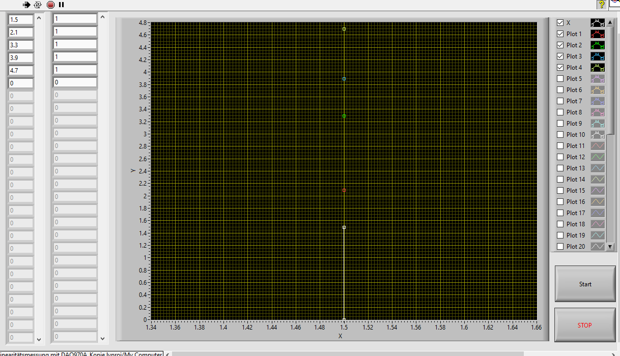 Die Punkte werden ordentlich wie gewünscht angezeigt. Sobald ich neue Werte eingebe und erneut auf Start drücke, werden diese wie vorher auch angezeigt. Leider werden die ersten Punkte gelöscht und nicht mit den zweite verbunden.