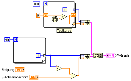 Ich möchte einen XY-Graph als Multiplot haben. Wenn ich mich am Beispiel "XY-Graph.vi" und der Kontexthilfe orientiere sieht mein Aufbau wie im Bild unten aus.