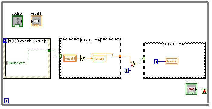 ich habe ein kleines VI (LabVIEW 8.5) entwickelt, dass einfach nur zählt, wie oft ein bestimmtes Ereignis (aktivieren eines Hebels (Boolesch)) vorkommt.