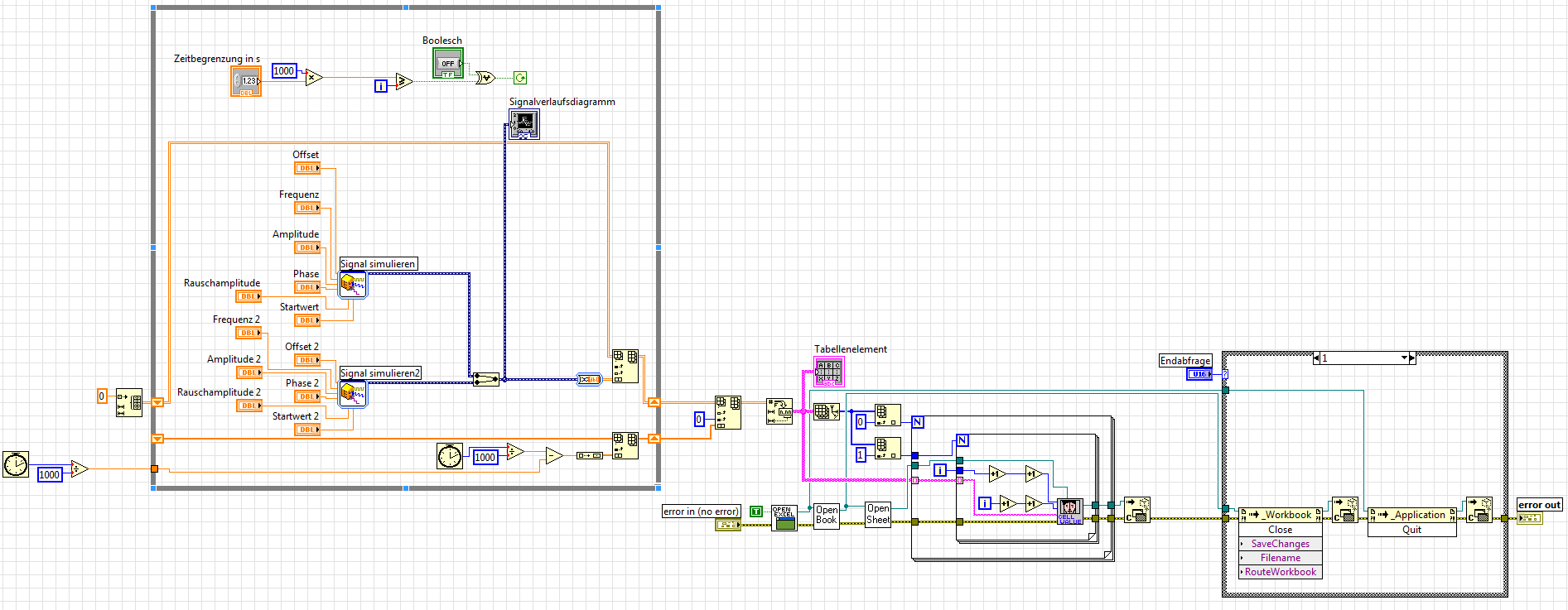 ich möchte mithilfe eines in Eigenbau angepassten Labview Beispiels (Write Table To XL.vi) mit "Signal generieren" erzeugte Werte in eine Excel Tabelle schreiben.