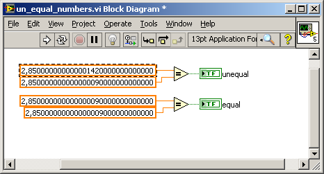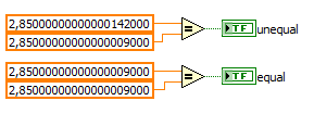 Die Frage ist: Was unterscheidet die obigen Konstanten voneinander? Beide sind DBL, beide sind nicht durch irgendwelche Formatierungen verkürzt/verändert, ich habe keine Ahnung, wieso Labview mir meldet, dass sie ungleich sind.